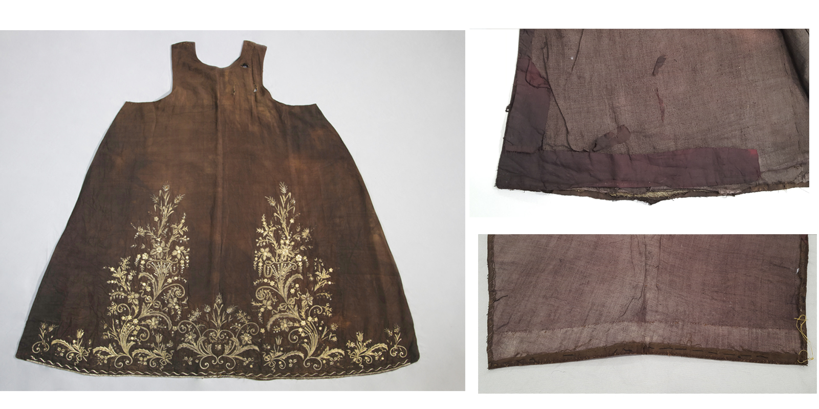 - Esta misma apreciación se pudo documentar en los restos de forro original que se hallaron en el interior de las prendas, una vez que se inició el desmontaje de las mismas, de cara a la restauración (Fig. 3).