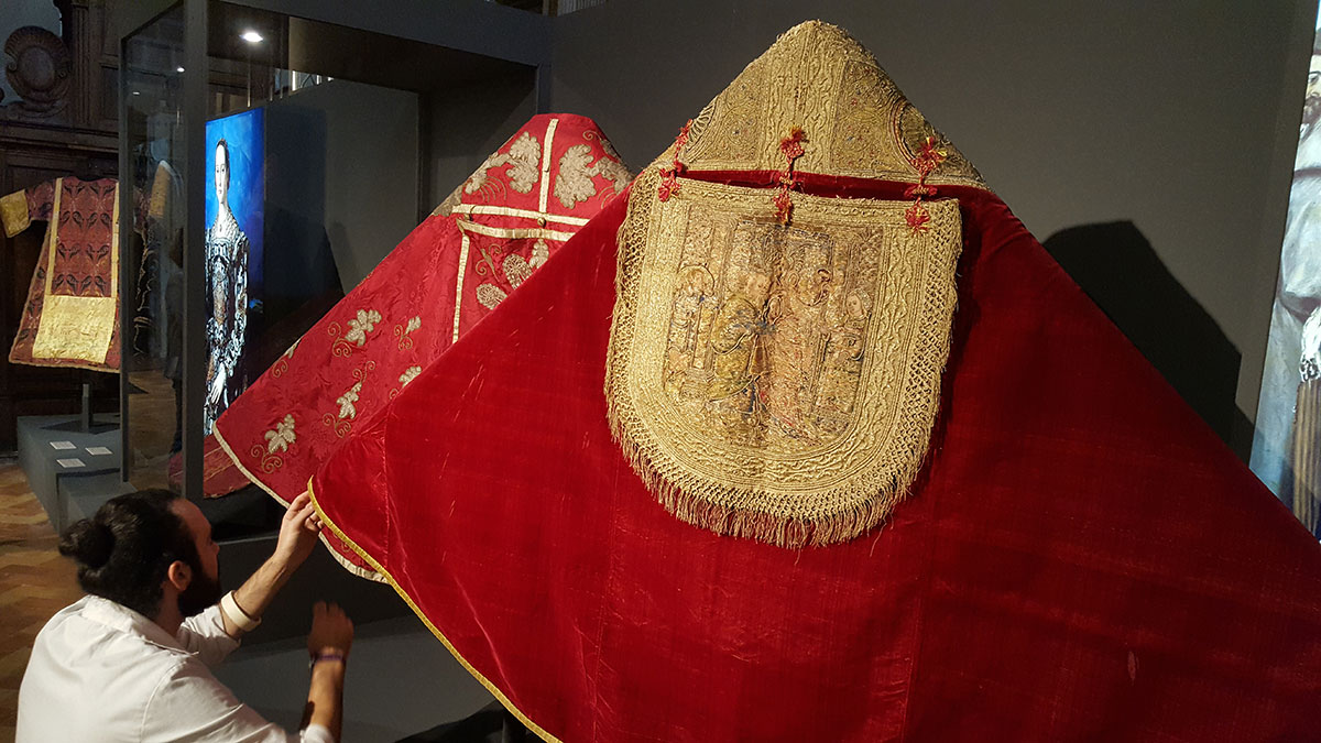 MONTAJE EXPOSITIVO “AL HILO DE LA SEDA. Tejidos de la Diócesis de Jaén del siglo XVI al XVIII”. Catedral de la Asunción, Jaén. En colaboración con Fundación Caja Rural de Jaén.
