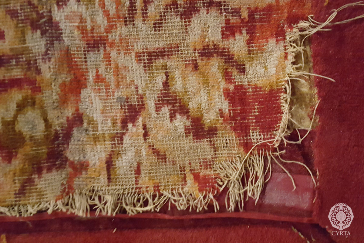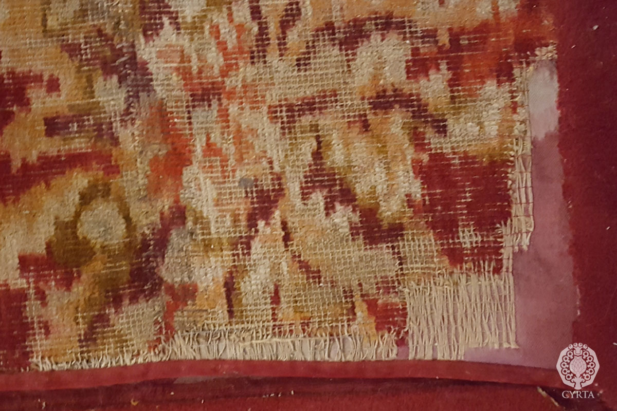 • TRATAMIENTOS: Documentación fotográfica, aspirado, humectación, estudio del diseño, consolidación de la zona afectada, reintegración cromática.